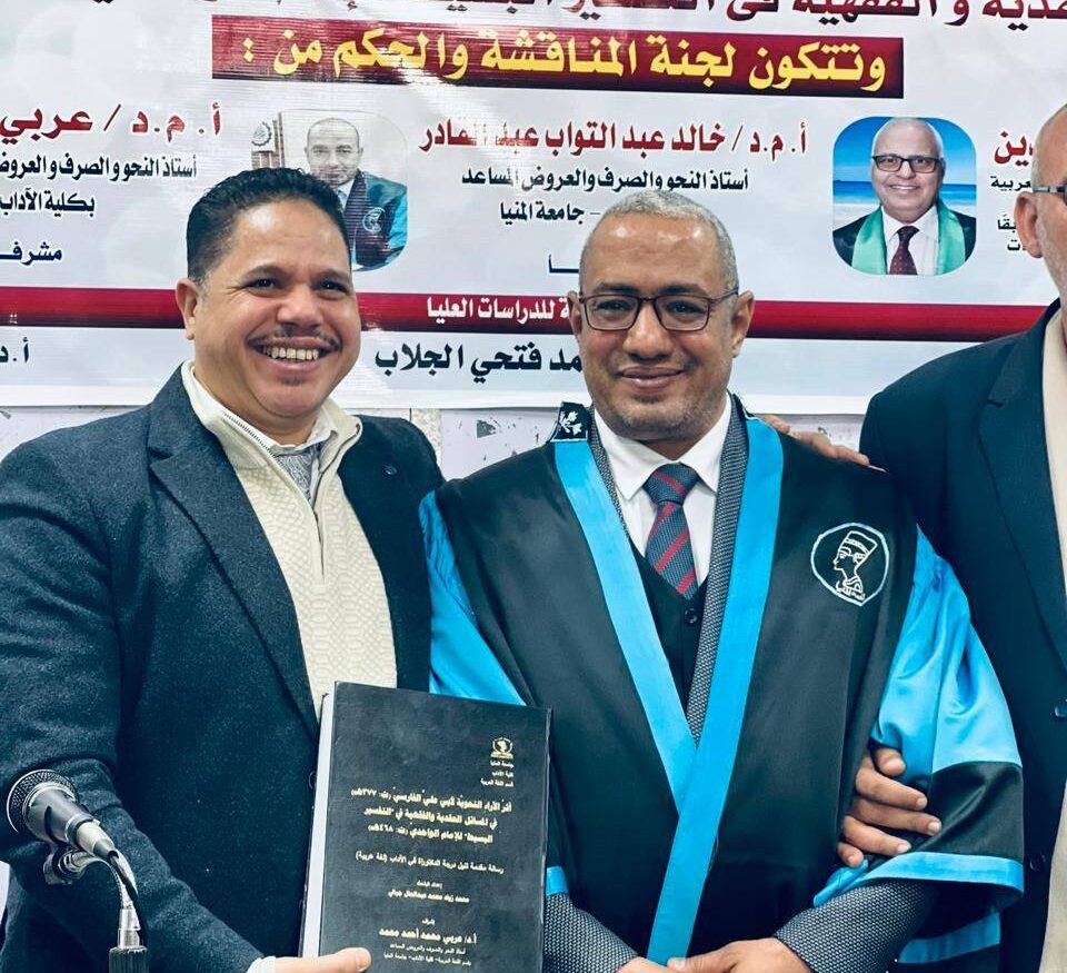 وجّه رجل الأعمال حسن أبو الدهب التهنئة إلى الدكتور محمد زياد، بمناسبة حصوله على درجة الدكتوراه من كلية الآداب بجامعة المنيا، مع مرتبة الشرف الأولى، والتوصية بالطبع والنشر والتداول بين الجامعات.