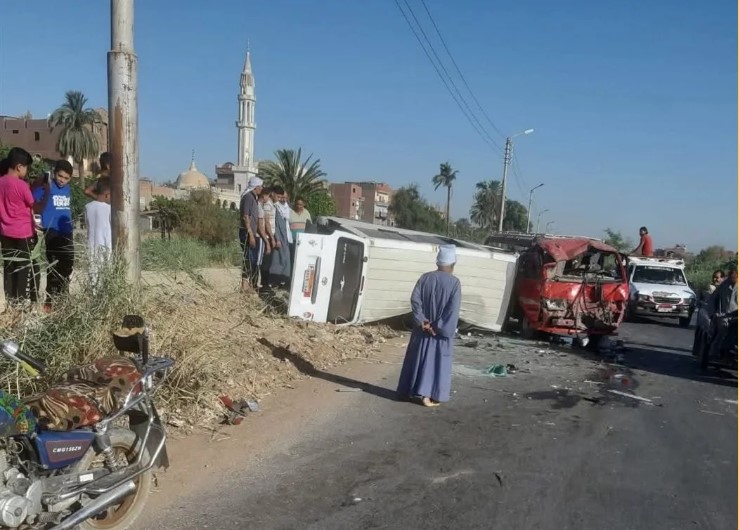 إصابة 14 شخصا في حادث تصادم سيارتين ميكروباص بطريق جهينة الشرقية بسوهاج