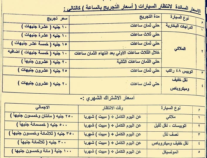 وتتراوح تعريفة الانتظار المقررة في هذه المواقع ما بين 10 إلى 25 جنيهاً، مع توفير خيارات للاشتراكات الشهرية بأسعار محددة، بما يضمن التوازن بين تقديم الخدمة وتكلفة التشغيل.