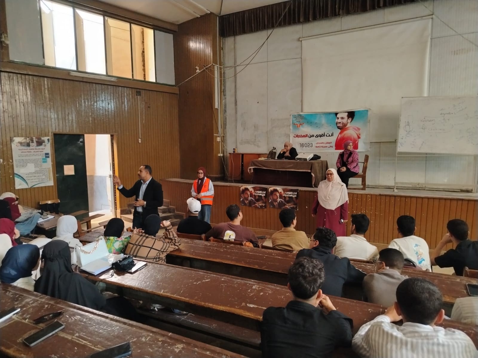 وتناولت المحاضرات أخطار التعاطي على الصحة الجسدية والنفسية للفرد. كما شهدت الفعالية حضور الأستاذة منة الله مصطفى، مديرة بيت التطوع بالجامعة، لتعزيز دور الطلاب في التوعية.