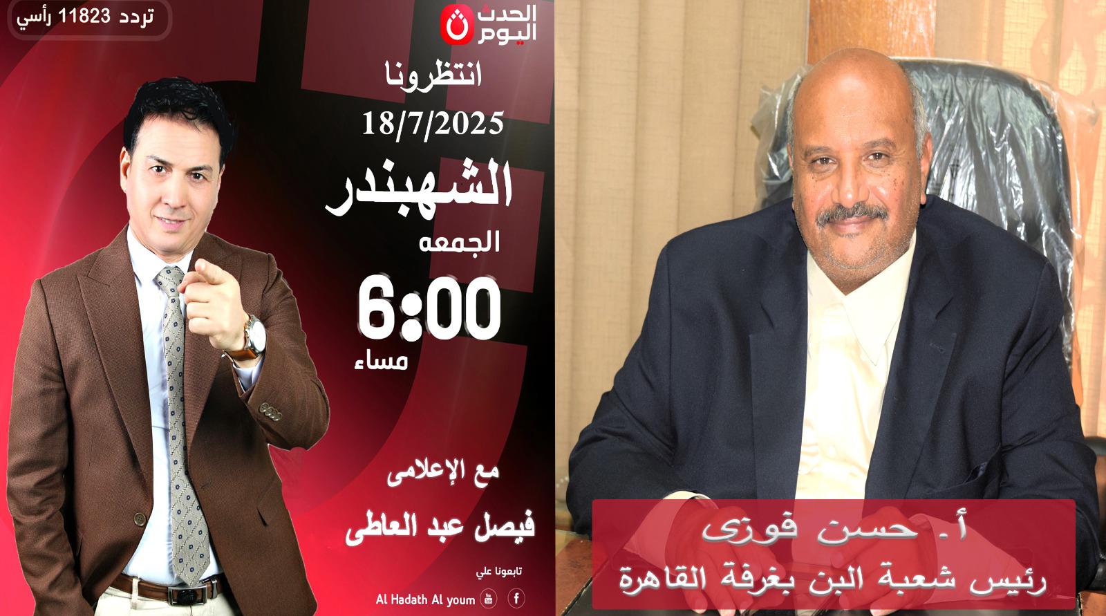 يستضيف الإعلامي فيصل عبد العاطي، خلال حلقة غدٍ الجمعة 18-7-2025 من خلال برنامج الشهبندر المُذاع علي قناة الحدث اليوم الفضائية، حسن فوزي رئيس شُعبة تجار البن بغرفة القاهرة، ولقاء حول آخر المستجدات بسوق هذا القطاع.