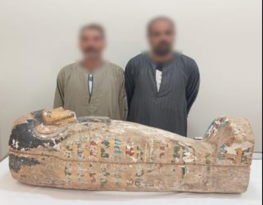 تهريب تابوت أثري، إذ أكدت معلومات وتحريات قطاعي السياحة والآثار والأمن العام بالتنسيق مع مديرية أمن سوهاج تورط المتهمين. بناءً على ذلك، تبين قيام شخصين بحيازة قطع أثرية بقصد الاتجار، علماً بأن أحدهما له معلومات جنائية مسجلة.